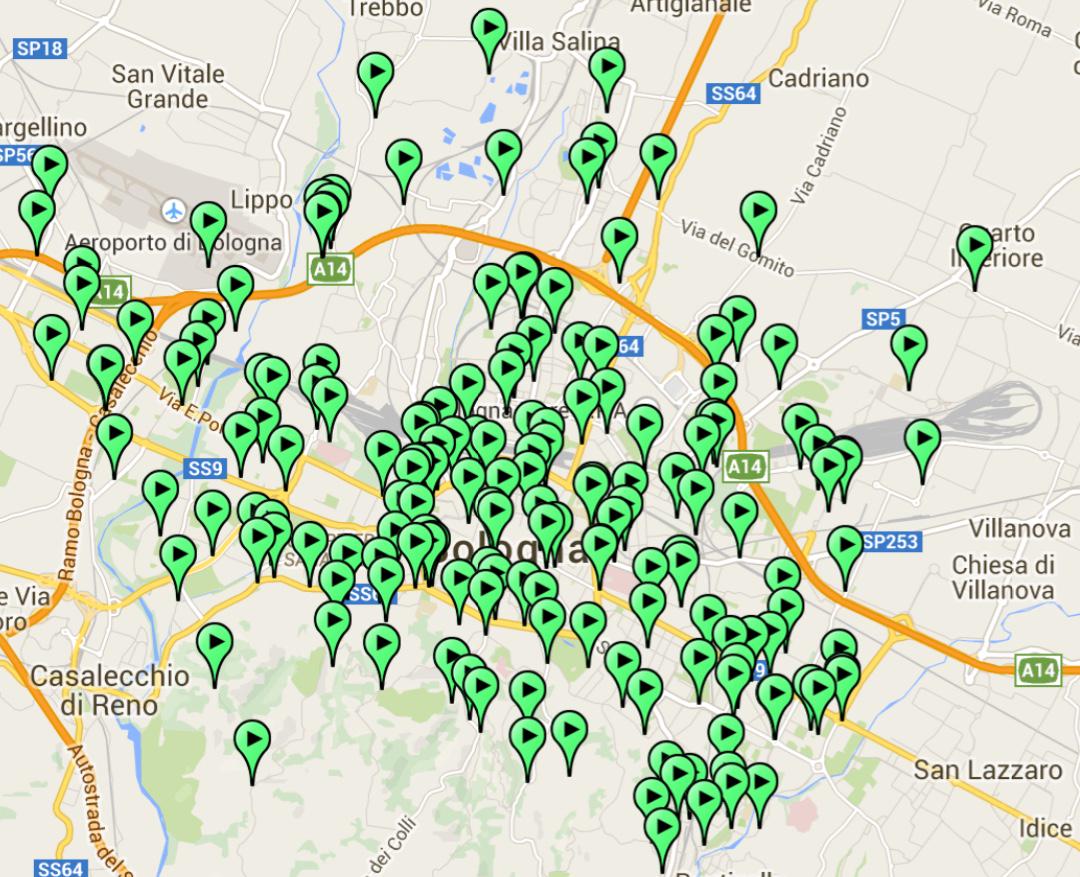 Quella che vedete sopra è la mappa twittata dal comune di Bologna, che annunciava "ecco gli spalatori in azione a Bologna dall'1 di notte."
